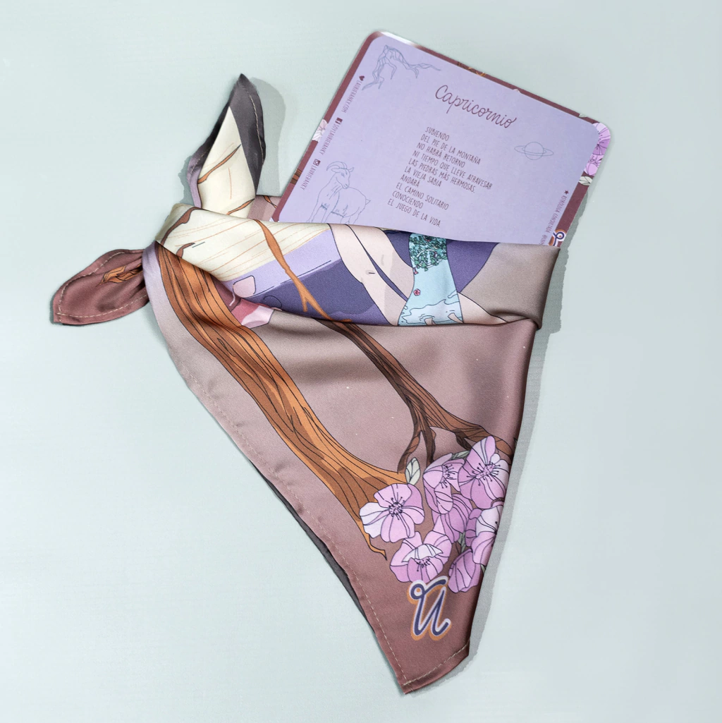 Capricornio. Precioso pañuelo con poesía. 100% poliéster mate súper suave.
