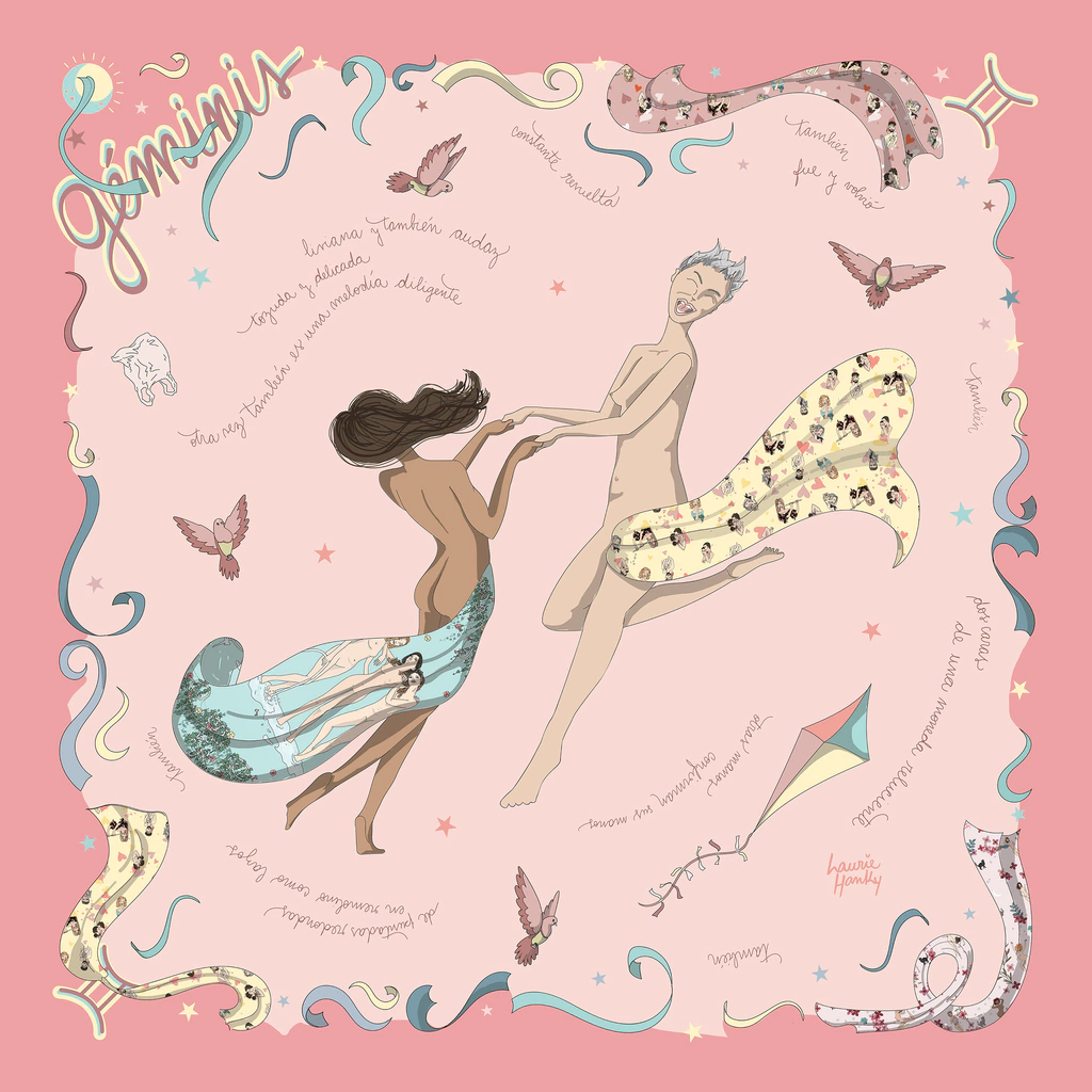 Géminis. Precioso pañuelo con poesía. 100% poliéster mate súper suave.