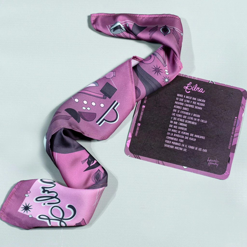 Libra. Precioso pañuelo con poesía. 100% poliéster mate súper suave.