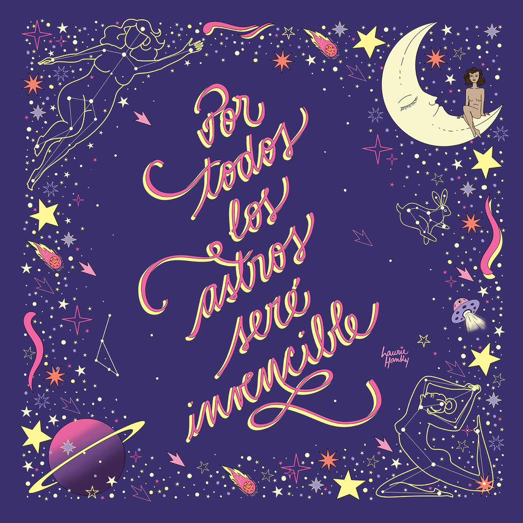Por todos los astros, seré invencible. Precioso pañuelo con poesía. 100% poliéster mate súper suave.